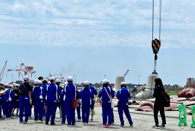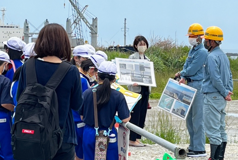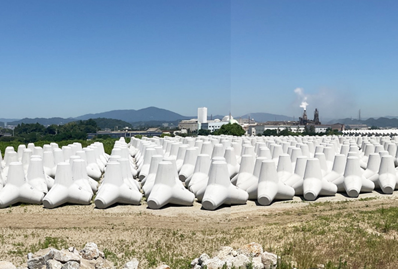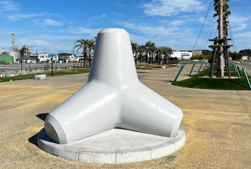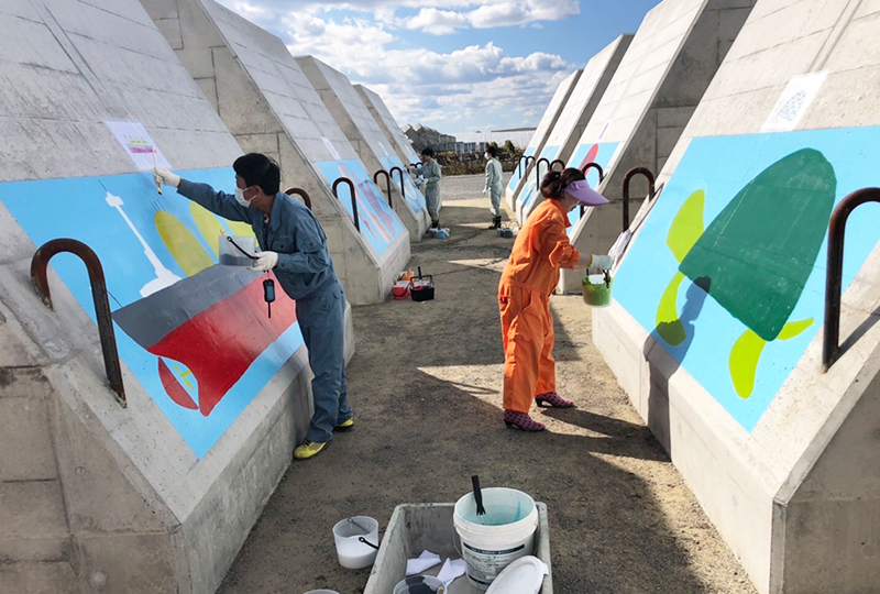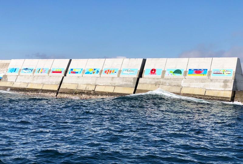市民からデザインを募集したのをもとに、社員と国交省職員でブロックに描いたのちに、沖防波堤に設置されました。